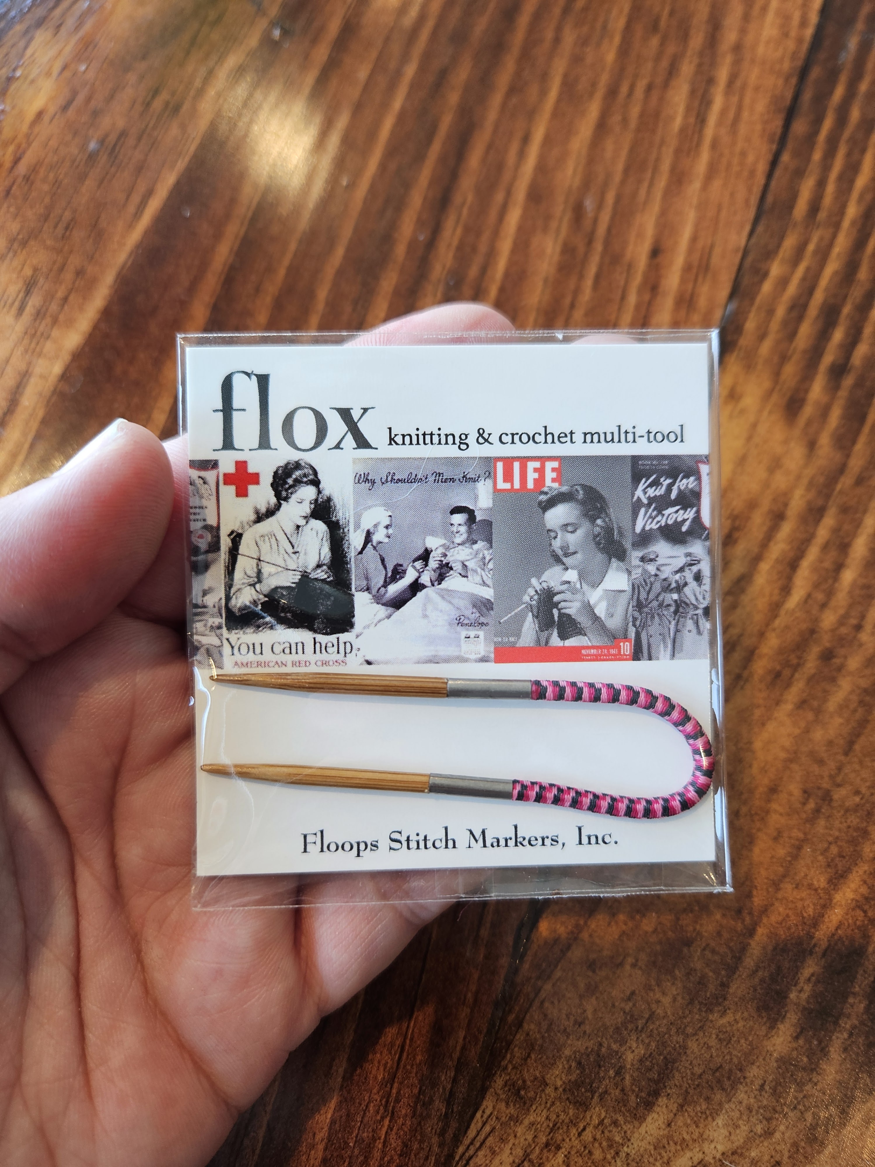 If you have no clue what a Flox is.....Flox are the multitool every stitcher needs in their bag! Use as a cable needle, to hold a dropped stitch, to mark your place, as a stitch markers, and anything else you can think of!